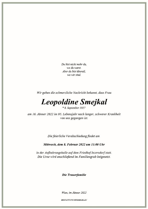 geboren am 8. September 1927 in Wien gestorben am 16. Januar 2022 in Wien