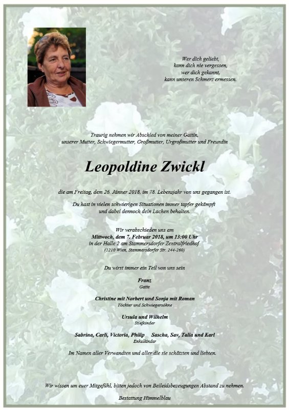 geboren am 21. Juli 1940 gestorben am 26. Januar 2018 in Wien