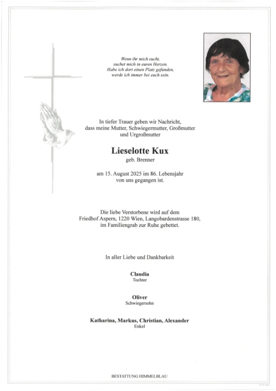 geboren am 19. April 1940 gestorben am 15. August 2025 in Wien