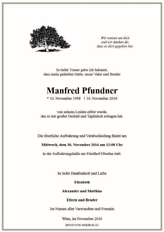 geboren am 10. November 1958 gestorben am 10. November 2016