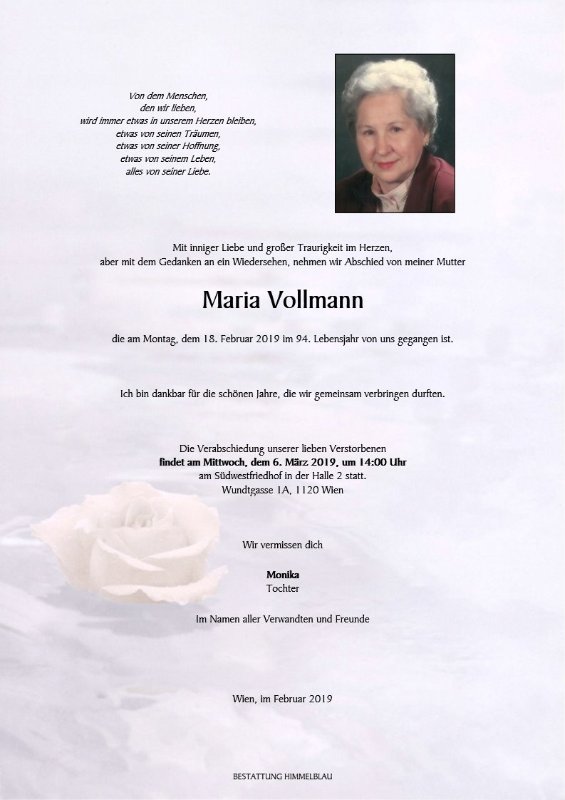 geboren am 1. Oktober 1925 gestorben am 18. Februar 2019 in Wien