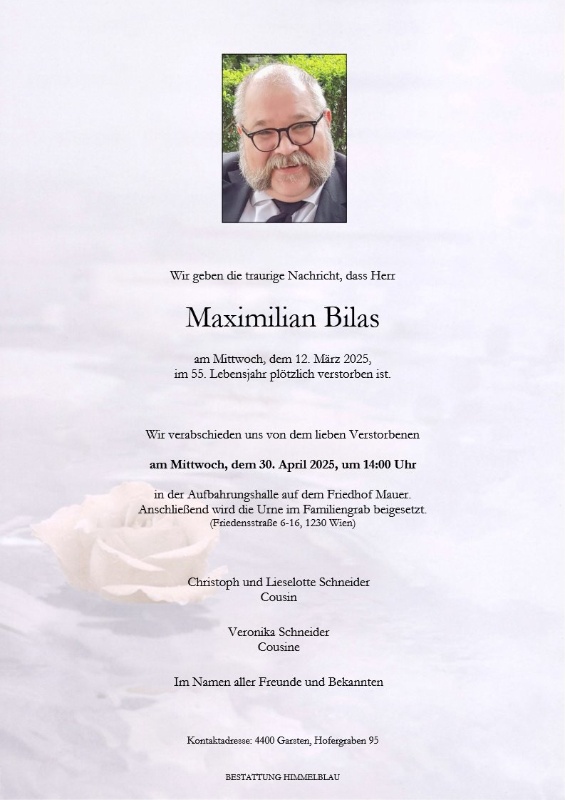 wir haben uns die letzten Jahre leider immer weniger gesehen oder gehört. Ich hoffe du findest jetzt dein Glück. Die lustigen Abende bei dir werden mir gut in Erinnerung bleiben. Du warst ein ganz ein feiner und toller Kerl. Bleib auch dort wo du bist so und halt ein Platzerl auf deiner Couch zum Einsinken frei. Gute Reise mein Freund.