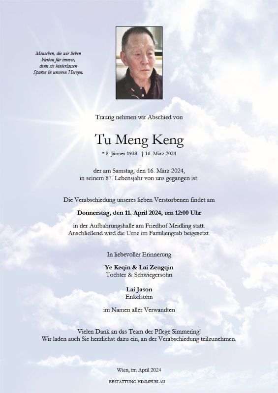geboren am 8. Januar 1938 gestorben am 16. März 2024