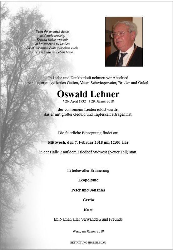 geboren am 26. April 1932 gestorben am 29. Januar 2018 in Wien