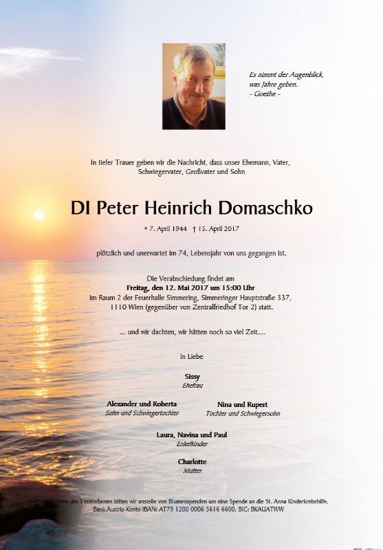 geboren am 7. April 1944 gestorben am 15. April 2017