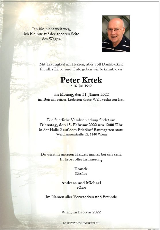 geboren am 16. Juli 1942 gestorben am 31. Januar 2022 in Kritzendorf