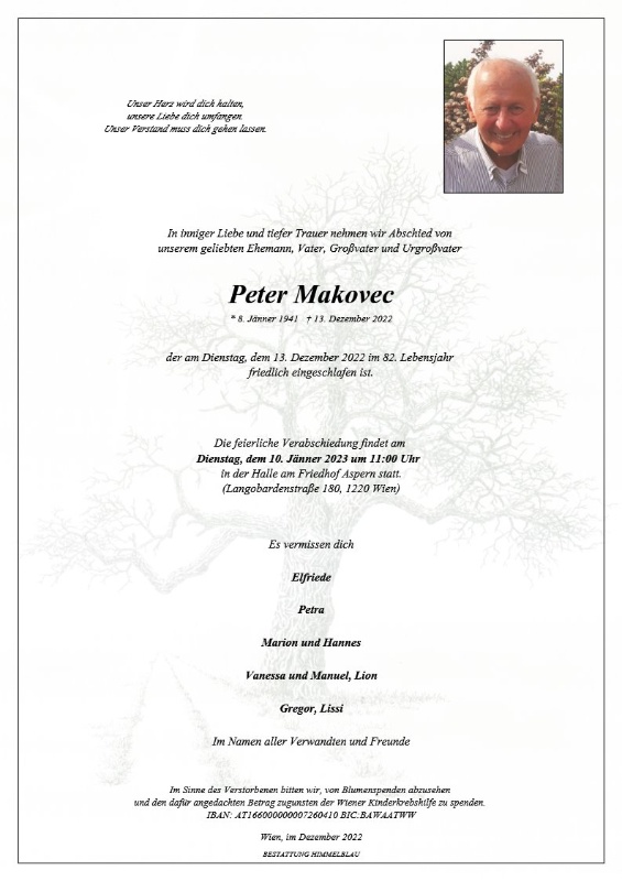 geboren am 8. Januar 1941 gestorben am 13. Dezember 2022 in Wien
