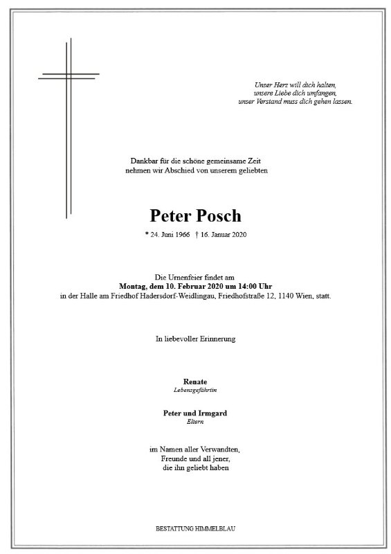 Liebe Renate, Liebe Eltern von Peter!