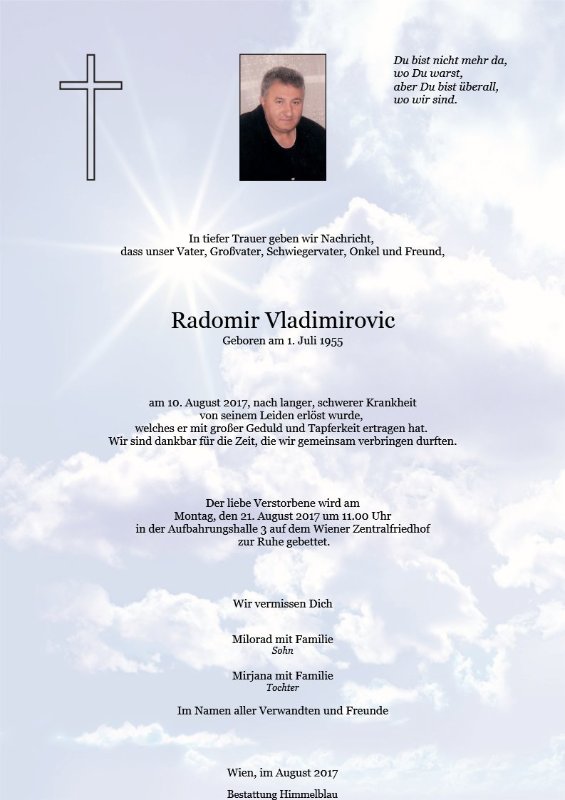 geboren am 1. Juli 1955 gestorben am 10. August 2017