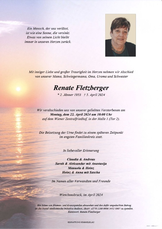 Viel Kraft in dieser schweren Zeit wünschen Thomas, Elke und Gretl Aufner