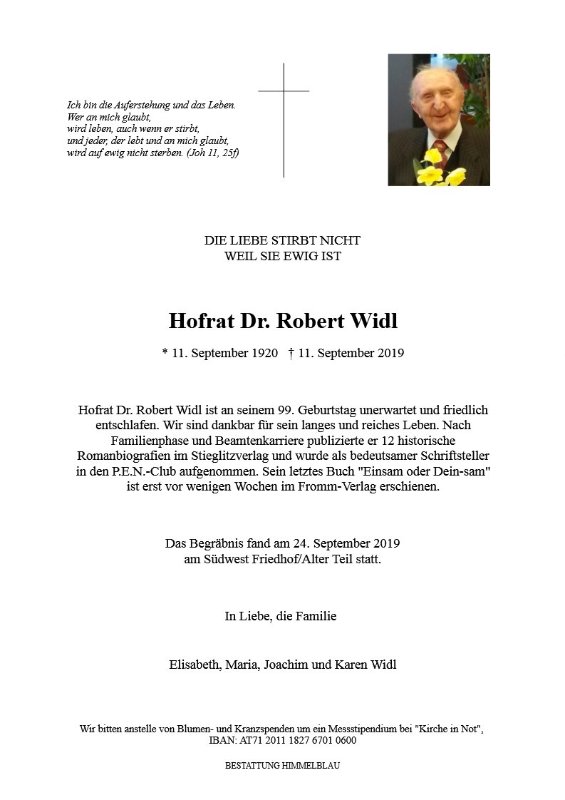 geboren am 11. September 1920 gestorben am 11. September 2019 in Wien