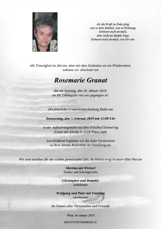 geboren am 1. April 1939 in Wien gestorben am 20. Januar 2019 in Wien