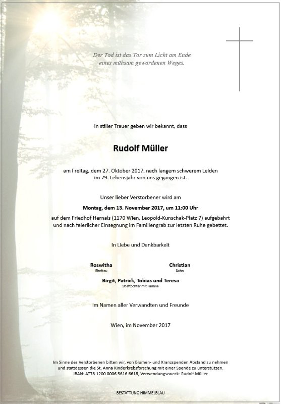 geboren am 30. Juni 1939 gestorben am 27. Oktober 2017