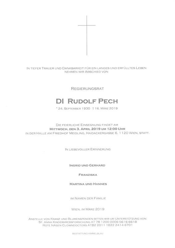 Meine Anteilnahme gilt der Familie und den Freunden.Ich selbst war Schüler von Prof. Pech und habe ihm sehr viel zu verdanken und habe sehr viel von ihm gelernt.Ich werde ihn nie vergessen !