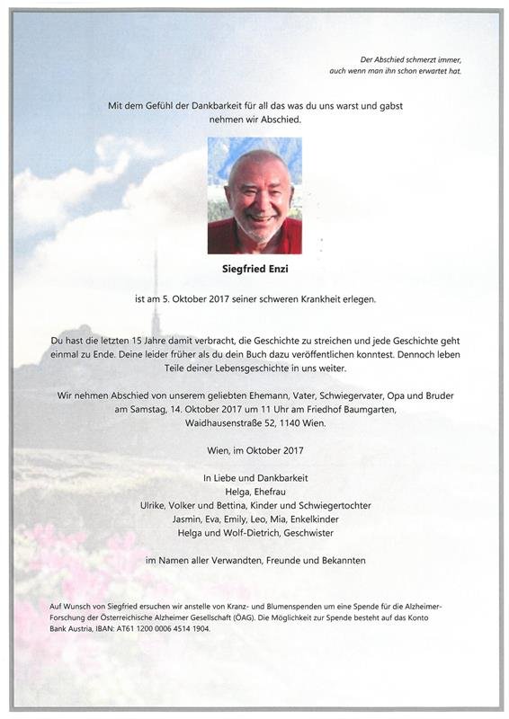 Gerne hätte ich mit Dir über unsere längst vergangene Studienzeit gesprochen, in der Du immer - vom absolut ersten Tag an - meine größte Stütze warst.