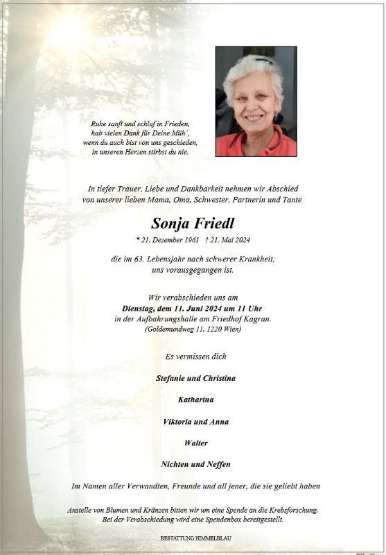 Wir werden dich immer in unseren Gedanken tragen und weiterleben lassen.