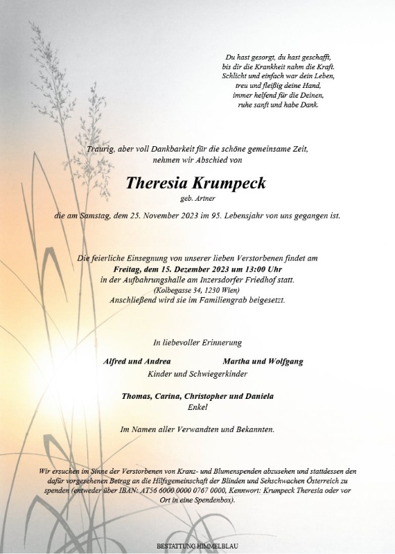 geboren am 27. September 1929 gestorben am 25. November 2023 in Wien