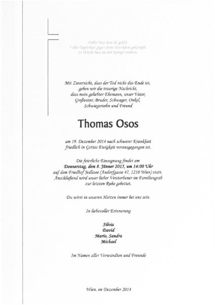geboren am 12. Juli 1968 gestorben am 19. Dezember 2014
