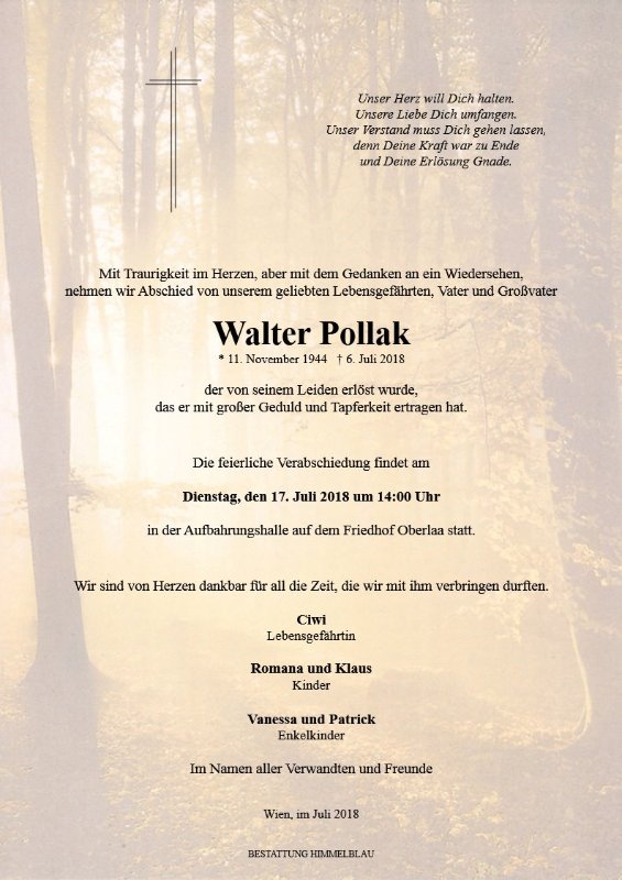geboren am 11. November 1944 gestorben am 6. Juli 2018 in Wien