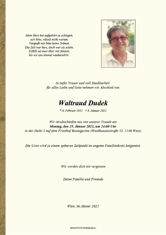 geboren am 6. Februar 1951 in Schrems gestorben am 6. Januar 2021 in Wien
