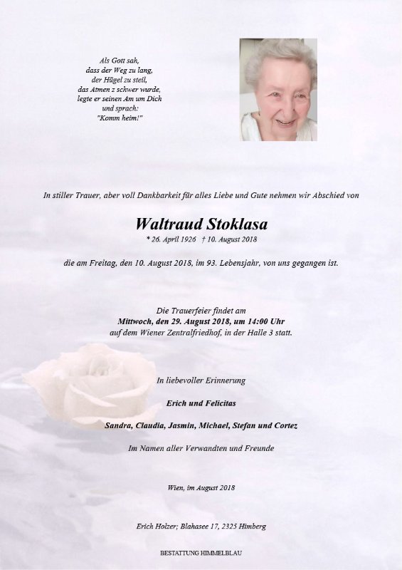 geboren am 26. April 1926 gestorben am 10. August 2018 in Wien
