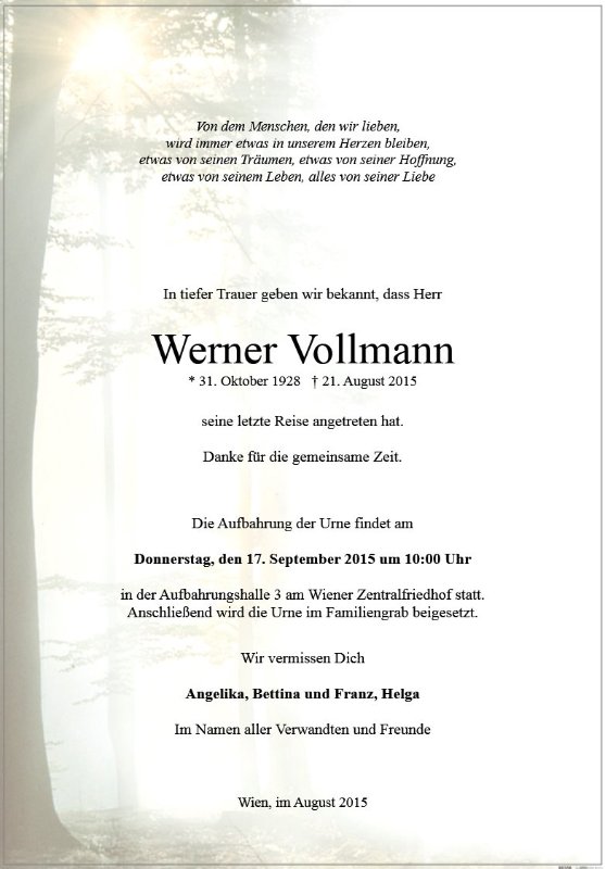 geboren am 31. Oktober 1928 in Wien gestorben am 21. August 2015