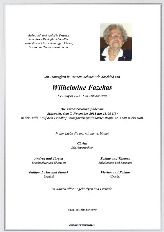 geboren am 19. August 1918 in Nöchling gestorben am 20. Oktober 2018 in Wien