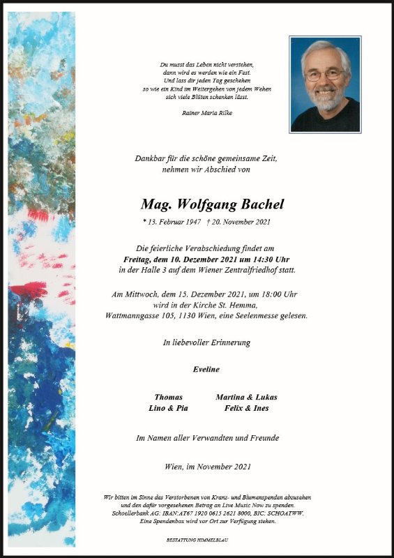 geboren am 13. Februar 1947 in Wien gestorben am 20. November 2021 in Wien
