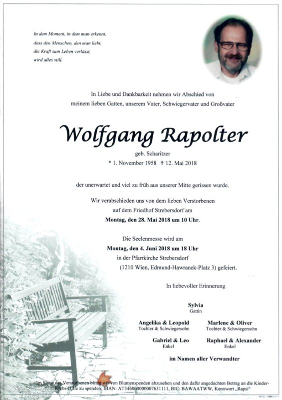 geboren am 1. November 1958 gestorben am 12. Mai 2018