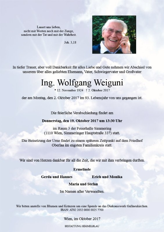 geboren am 12. November 1924 gestorben am 2. Oktober 2017